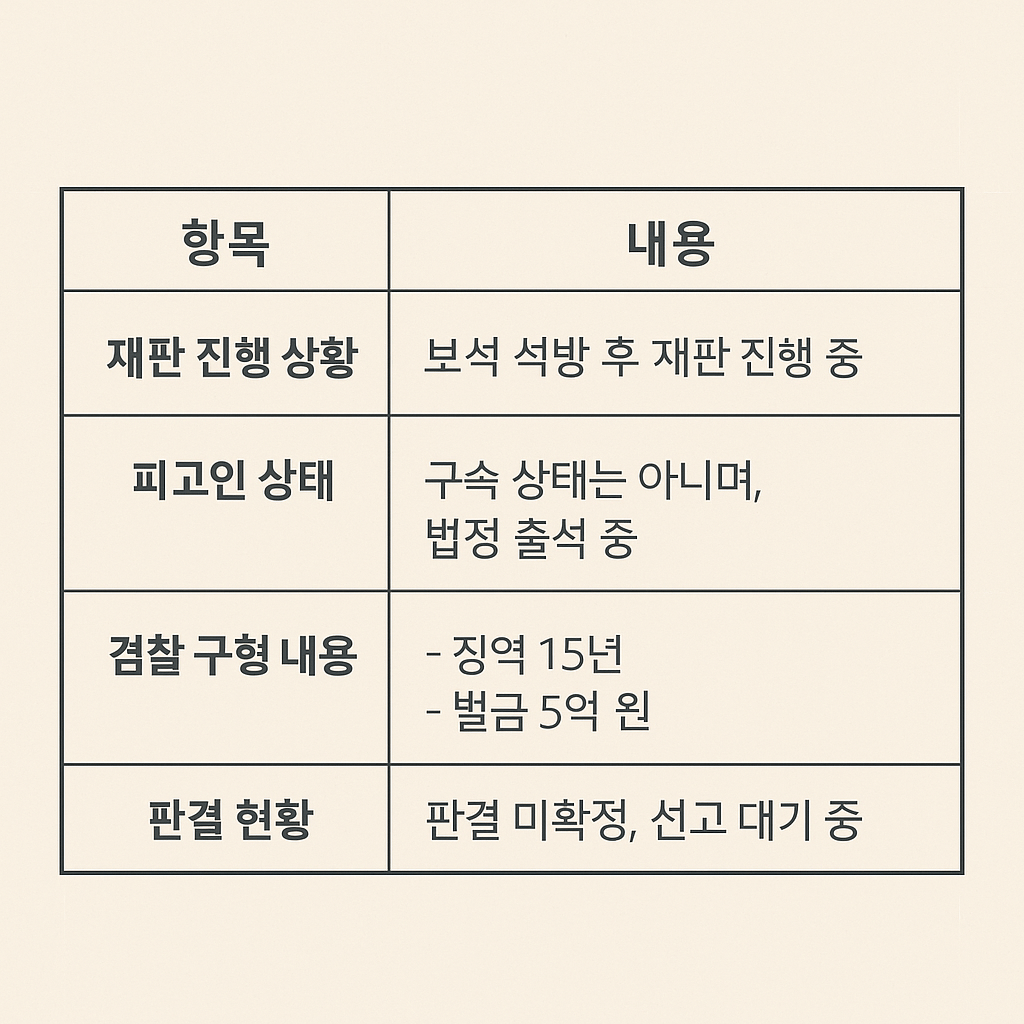 | 판결 현황 | 판결 미확정, 선고 대기 중 |