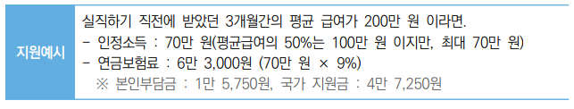 * 연금보험료는 인정소득(실업 전 3개월 간 평균 소득의 50%, 최대 70만 원)의 9% 금액으로 산정