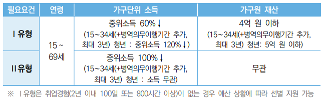 ※ 단, 공무원, 사립학교 교직원, 연매출 4억 원 이상의 자영업자, 월 임금 300만 원 이상의 대규모기업 근로자(만 45세 미만), 월 소득 500만 원 이상의 특수형태근로종사자, 졸업까지 남은 수업 연한이 2년을 초과하는 대학 재학생, 만 75세 이상자는 지원 제외