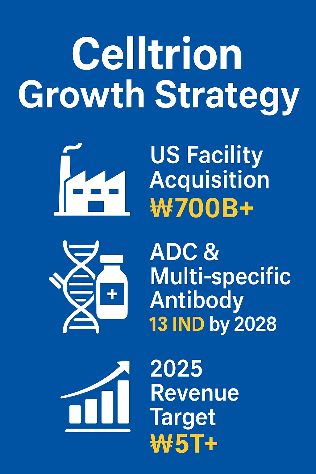 셀트리온은 미국 내 생산 기지 구축과 함께 혁신 신약 개발을 병행하며, 관세 리스크 제거 → 제조 효율화 → 경쟁력 강화라는 전략적 성장 구조를 완성하고 있습니다. ADC 및 다중특이항체를 기반으로 한 파이프라인 확장은, 셀트리온을 글로벌 바이오 산업의 차세대 리더로 향하게 할 강력한 동력이 될 것입니다.