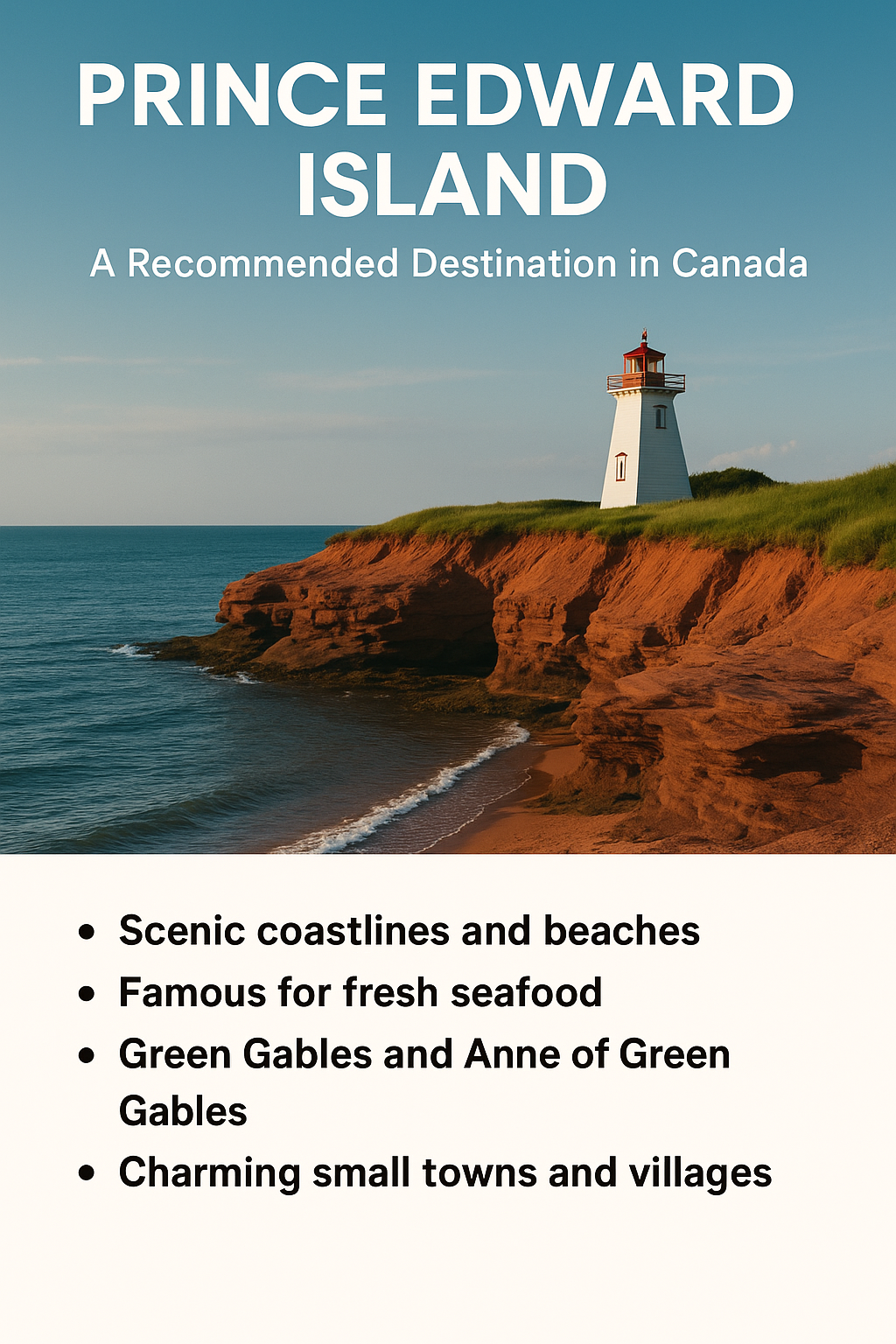 | PEI | 빨강머리 앤 배경, 해변 | 가족·휴양 여행 |