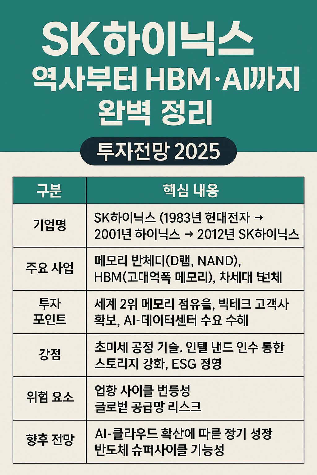 이번 글에서는 SK하이닉스의 역사, 투자적 매력, 그리고 앞으로의 전망까지 체계적으로 총정리하여 드리겠습니다.