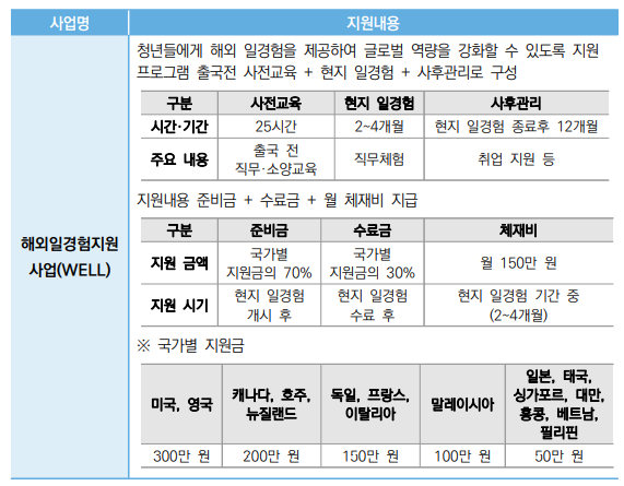 해외취업연수사업 참여 청년층의 재정 부담 완화를 위한 연수장려금이 지급됩니다.