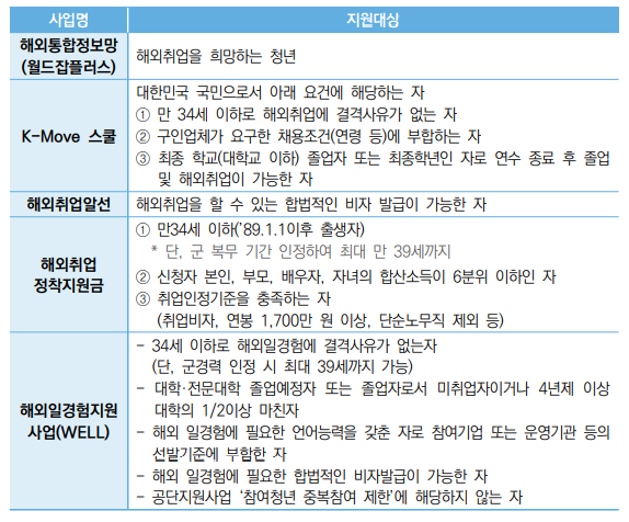 해외취업정착지원금 군 복무 기간 반영하여 최대 만 39세까지 신청 가능합니다.
