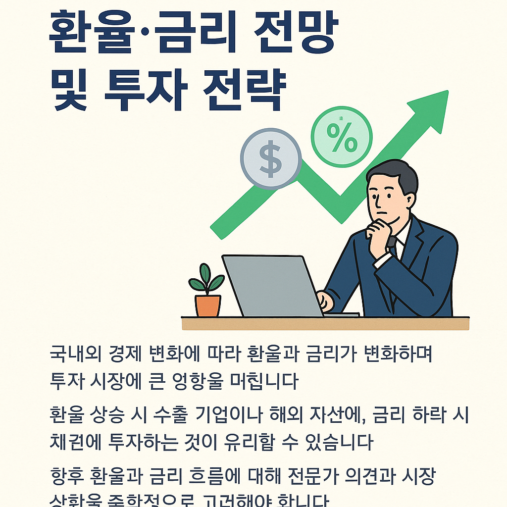 | 포트폴리오 구성 | 환 Exposure 분산: 해외 자산 비중 일부 조정. 리스크 관리: 환 헤지 상품, 글로벌 ETF 등 이용 가능. 금리·환율 연동 상품: 예적금+환 적금 조합형 활용 고려. |