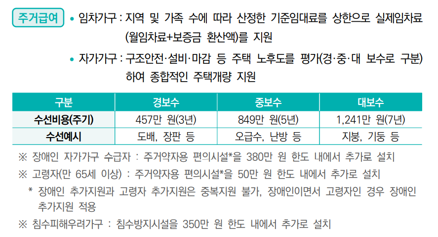 ※ 생계급여, 의료급여, 주거급여 수급자에게만 지원됩니다.